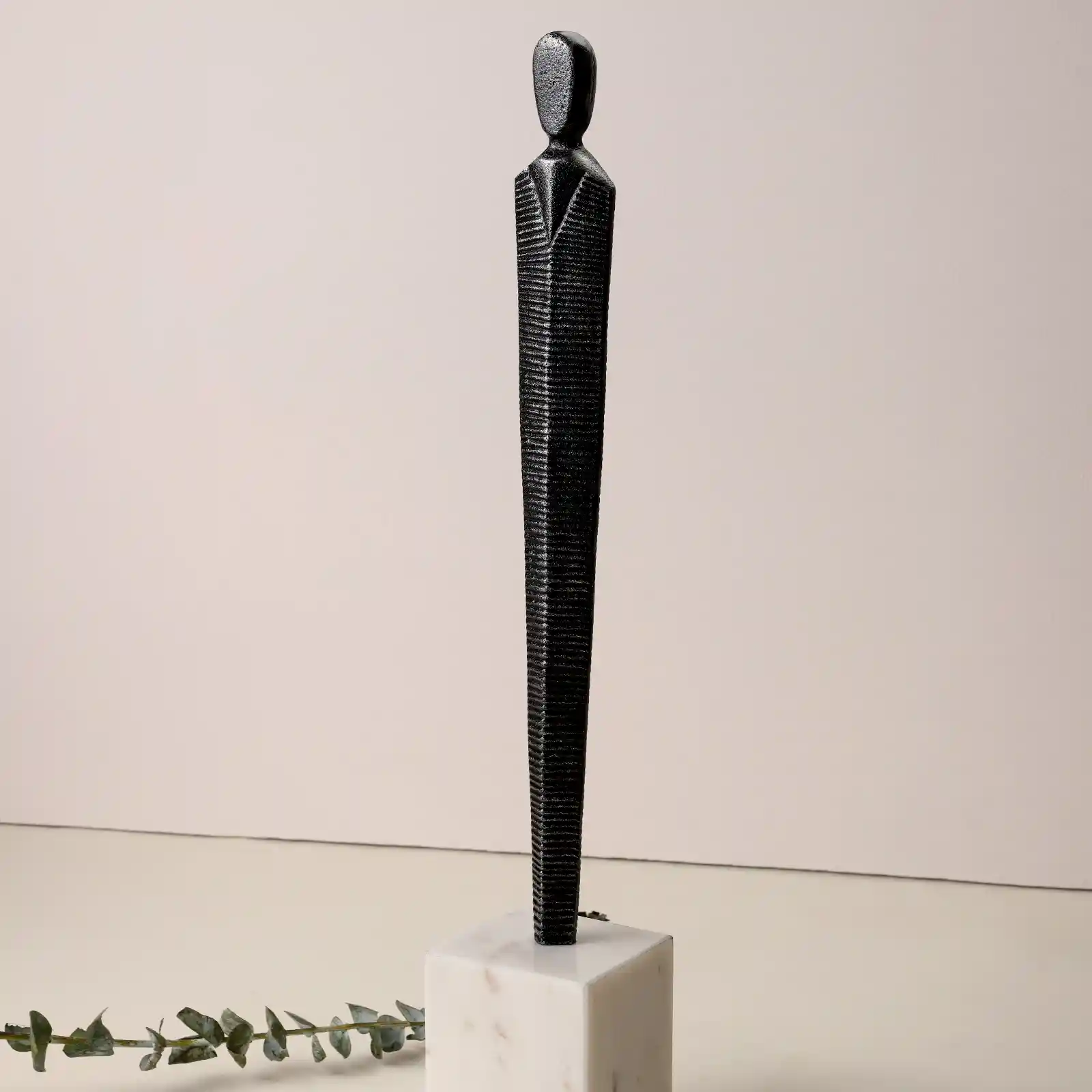 Freedom from Disturbance stands tall and serene, symbolizing inner balance and emotional clarity. This elongated figure brings a quiet, meditative presence to your home, inspiring peace amidst the noise of everyday life. Hand-sculpted with a vertical ribbed texture for visual elegance, it is mounted on a smooth stone base that provides stability and contrast—an artful embodiment of tranquility and timeless design.